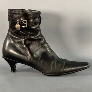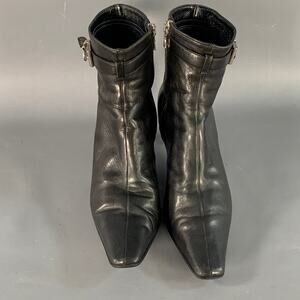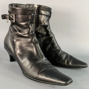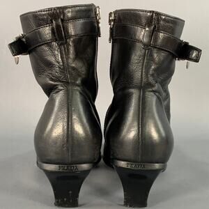 PRADA Size 7 Black Leather Kitten Heel Side Zipper Belted Ankle Boots