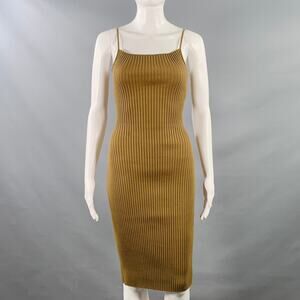 PRADA Size S Brown Cotton Rib Knit Spaghetti Straps Knee Length Dress