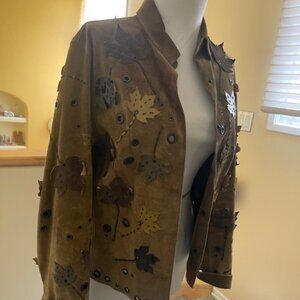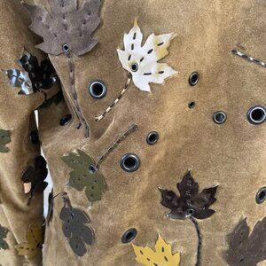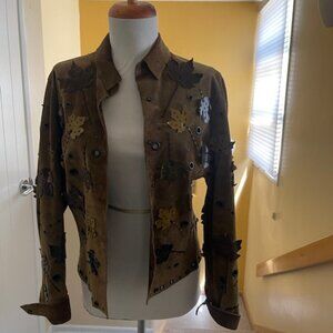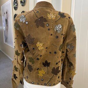 PRADA Suede Leather Jacket with leaves hand sewn on it, unique and rare! size 40