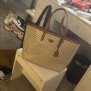 BRAND NEW PRADA TOTE BAG IT’S WHITE WITH BROWN HAS THE METAL LOGO ON THE FRONT THAT SAYS PRADA HAS THE METAL LOGO INSIDE WITH A ZIPPER POCKET SIDE POCKET AND ANOTHER SIDE POCKET ON THE OTHER SIDE CANVAS MATERIAL EASY TO WIPE DOWN AND CLEAN EXTREMELY HIGH-QUALITY. THIS IS A MASTER QUALITY BAG, WHICH MEANS IT’S NOT AUTHENTIC, BUT IT IS MADE WITH THE SAME MATERIALS AS THE REAL THING YOU CANNOT TELL A DIFFERENCE no lowball offers, please🩷