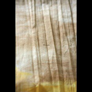 A wonderful tan and yellow skirt with tie-dye effect! The ruching at the waist is quite lovely as well.