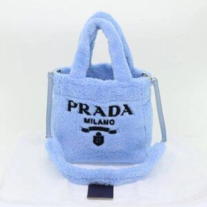 PRADA Terry Hand Bag 2way Light Blue Black Auth 47188AV