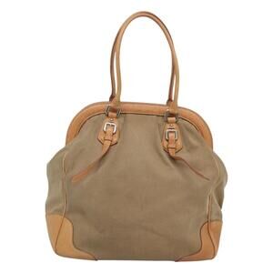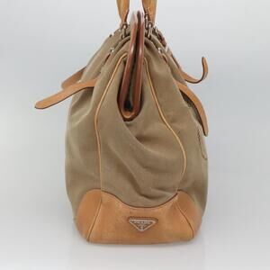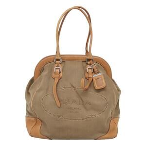 PRADA Tote Bag Canvas Beige Silver