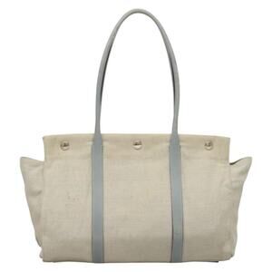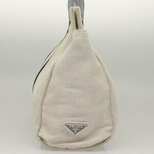 PRADA Tote Bag Canvas Beige Silver