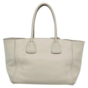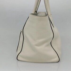 PRADA Tote Bag Leather White Silver Auth ep9305