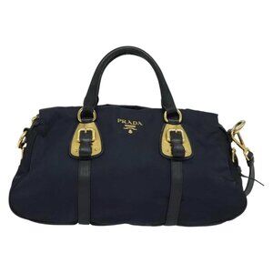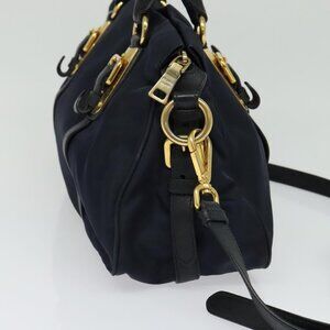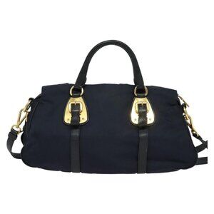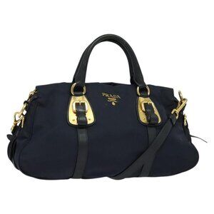 PRADA Tote Bag Nylon 2way Navy Gold Auth PP893
