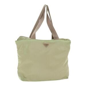 PRADA Tote Bag Nylon Beige Silver