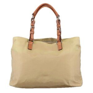 PRADA Tote Bag Nylon Beige Silver Auth 105105