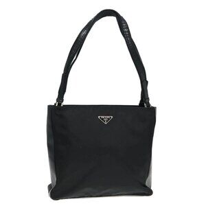 PRADA Tote Bag Nylon Black Silver Auth 94044