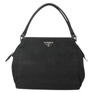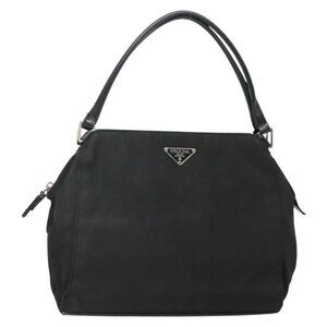 PRADA Tote Bag Nylon Black Silver Auth hk2904