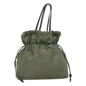 PRADA Tote Bag Nylon Green Gold Auth 128736