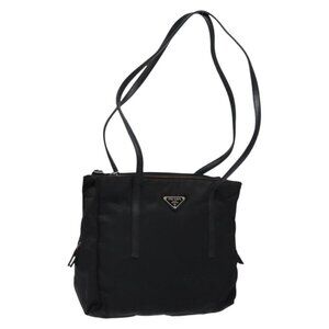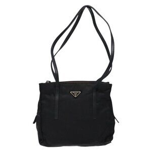 PRADA Tote Bag Nylon Leather Black Silver Auth ki5841