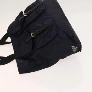 PRADA Tote Bag Nylon Navy Silver Auth 127867