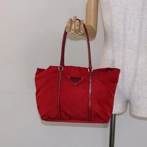 PRADA Tote Bag Nylon Red Silver Auth 138844
