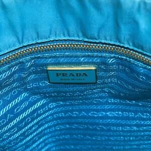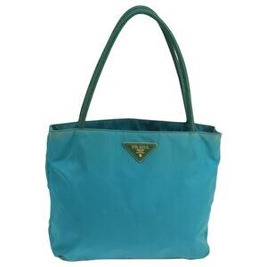 PRADA Tote Bag Nylon Turquoise Blue Gold