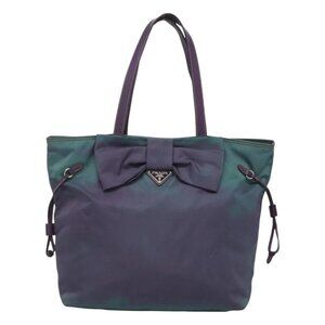 PRADA Tote Bag Nylon Turquoise Blue Silver Auth bs26897