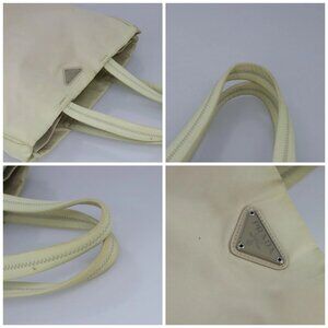 PRADA Tote Bag Nylon White Silver Auth 99539