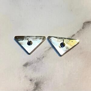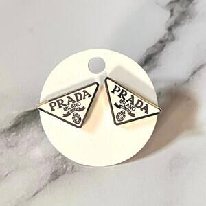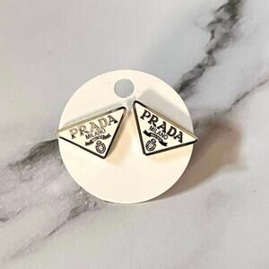 PRADA Triangle Logo Stud Earrings – Pierced, Stamped - White/Silver