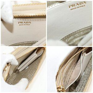 PRADA Triangle Mini Pouch Enamel 2way Ivory Gold 1NR015 Auth 147726M