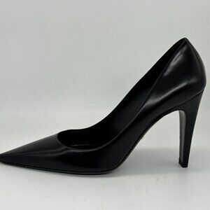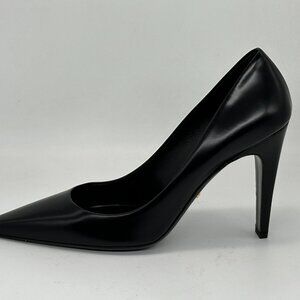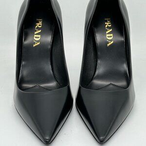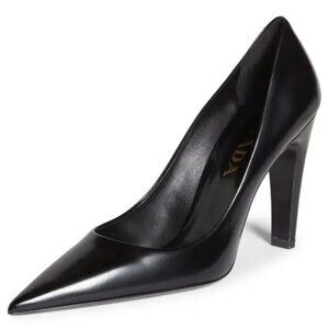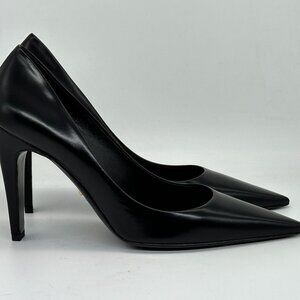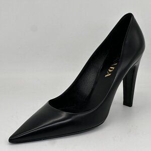 PRADA Triangle Show Leather Pointed Toe Pumps Heels Shoes Black