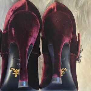 PRADA VELVET MARY JANE BROOCH PUMP SHOE SZ 8