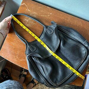 Gorgeous, soft, textured leather with a ton of space! It was purchased in the late 90's (when I was in high school) by my older cousin who was a Fancy Career Woman working in Finance. It hasn't been used in a long time. The exterior is in what I would say Good-Very Good condition - there are no worn areas, scuffs, etc, but just light wear that shows it's been carried. The interior has a couple of things to mention: The main compartment liner has been repaired, not beautifully π, but it is working just fine, and the small zipper compartment has come apart on one side seam. You could leave as is or repair it. Overall, this is a gorgeous bag that would work super well for all your daily items, or even to carry a small laptop or tablet.