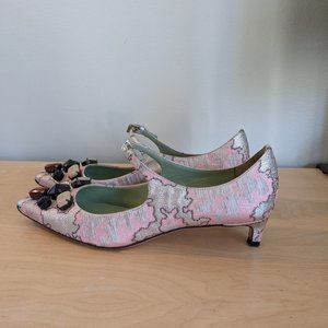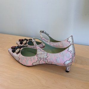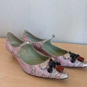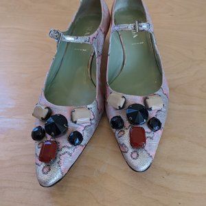 PRADA Vintage Brocade Pink Silver Metallic heels