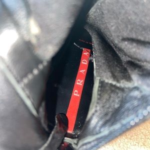 PRADA! Vintage leather boots. Made in Italy. Mid calf length. Chunky kitten heel with a square toe. From the early 90’s. A little wear and scuffs in the heel but leather is in good condition! So cute and comfy. Size 37.5