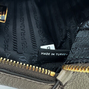 PRADA Vitello Daino Leather Cosmetic Pouch in Argilla