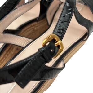 PRADA Vitello Shine Leather and Cork Espadrille Wedge Sandals Black Size 39 (9)