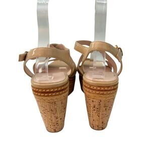 PRADA Vitello Shine Leather and Cork Espadrille Wedge Sandals Tan Size 39 (9)
