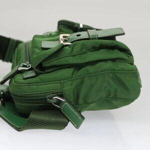 PRADA Waist Bag Nylon Green Silver Auth 105286V