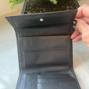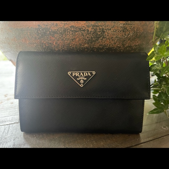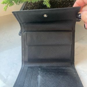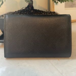 Prada Black Saffiano Leather Trifold Wallet in excellent condition.