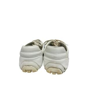 This PRADA White Leather Logo Race Lace Up Low Top Rev Race Sneakers Size EU 37 US 7 offer a contemporary twist on classic racing-inspired footwear. Constructed with a slip-last technique for increased flexibility, the sleek leather upper features high-frequency raised details and a screen-printed Prada logo. Completed with metal eyelets, cotton laces, and a lightweight rubber sole with a signature lug tread, these sneakers blend stylish design with outstanding performance.