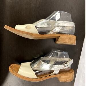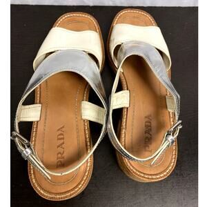 PRADA White Leather Metallic Silver Slingback Sandals Women's Size 40 Open Toe