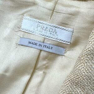 PRADA Women’s Cream Yellow Tweed Button Front Blazer Jacket with Pockets