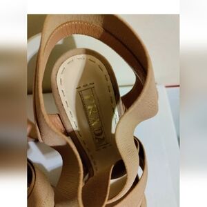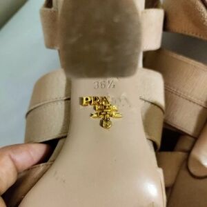 PRADA Women’s Nude/Beige Elastic Suede High Heels Sandals 36.5, 6.5.