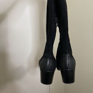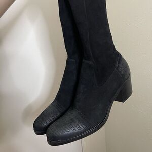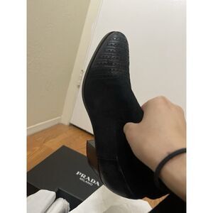 PRADA black suede leather western mid calf heeled boot size 35.5 US 5.5