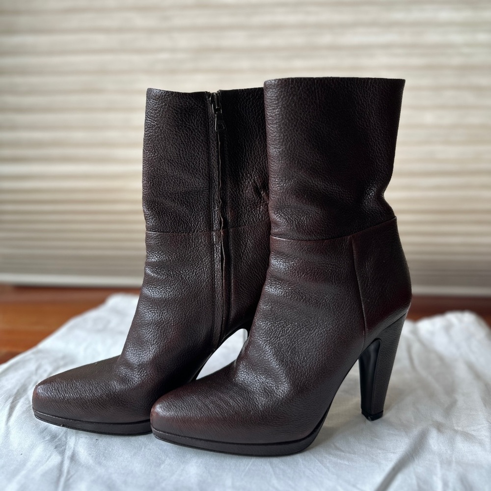 Prada Shoes | Prada Brown Leather Zip-Up Ankle Boots . Vero Cuoio Made In Italy Size 35 | Color: Brown | Size: 5
