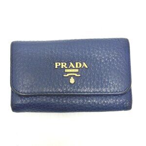 PRADA triangle plate 6-Ring Key Case Leather blue/GoldHardware