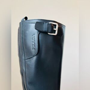 PRADA Authentic Black Leather wellington boots EURO Size 36.5, US Size 6, EUC!