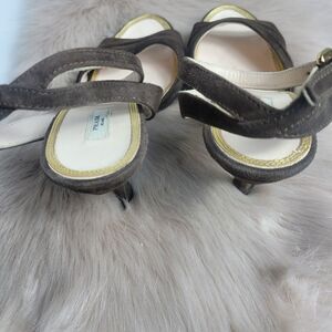 Prada Brown Suede Open-toe Ankle-strap Hi-heel Slingback Sandals Size 7 US 37.5 EUR Great Condition See Pictures For More Details.