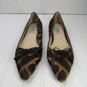 Ladylike but not too tame, this pointy-toe flat is made in Italy from leopard-spotted leather and detailed with a dainty bow and discreet logo hardware. Style Name:Prada Pointed Toe Bow Flats.