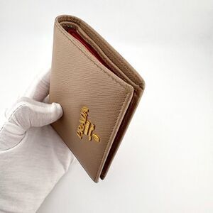 PRADA Women's Saffiano Bi-Fold Leather Wallet in Cream - comes with box & COA