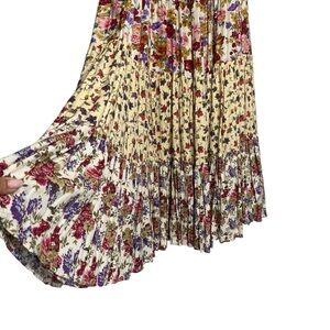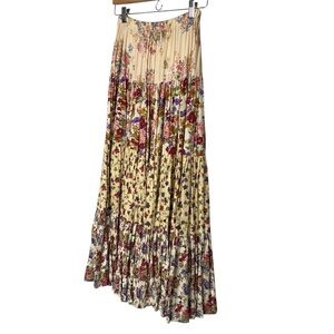 Prairie fire *one of a kind* vintage floral pleated long Boho cottagecore western ranch skirt. It is listed as one-size-fits-all. The waistband is VERY stretchy. Laying without stretch. It’s only 12 1/2 inches and with slight stretch easily goes to 19 inches!