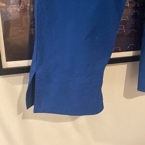 Size M capri pants in royal blue with draw string for waist sizing all measurements lying flat . Condition is good w/o stains w/o rips only little flaw is tread pulled on the back but not visible from a far. Some stretch for comfort. Smoke / pet free home .