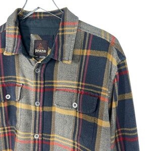 PRANA Blue & Tan Soft Flannel Plaid Long Sleeve Button Down Shirt Men's Size L