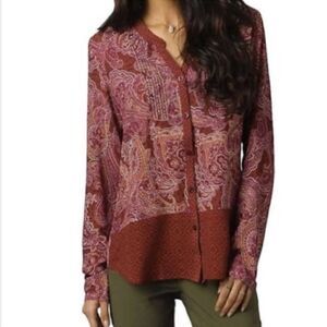 PRANA Evelyn Shirt Long Sleeve Blouse Henna Burnt Orange Women’s Size Small