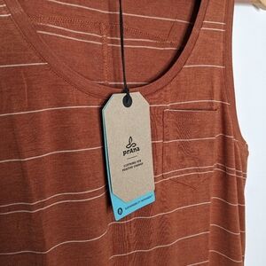 PRANA Foundation Scoop Neck Tank Outdoor Hiking Cooper Heather Stripe NEW Size M