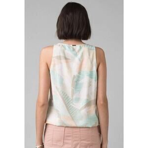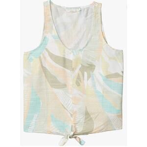 PRANA Mckenzie Tank Top Medium Peach Turquoise Leaf Pattern Tie Front Scoop NWT